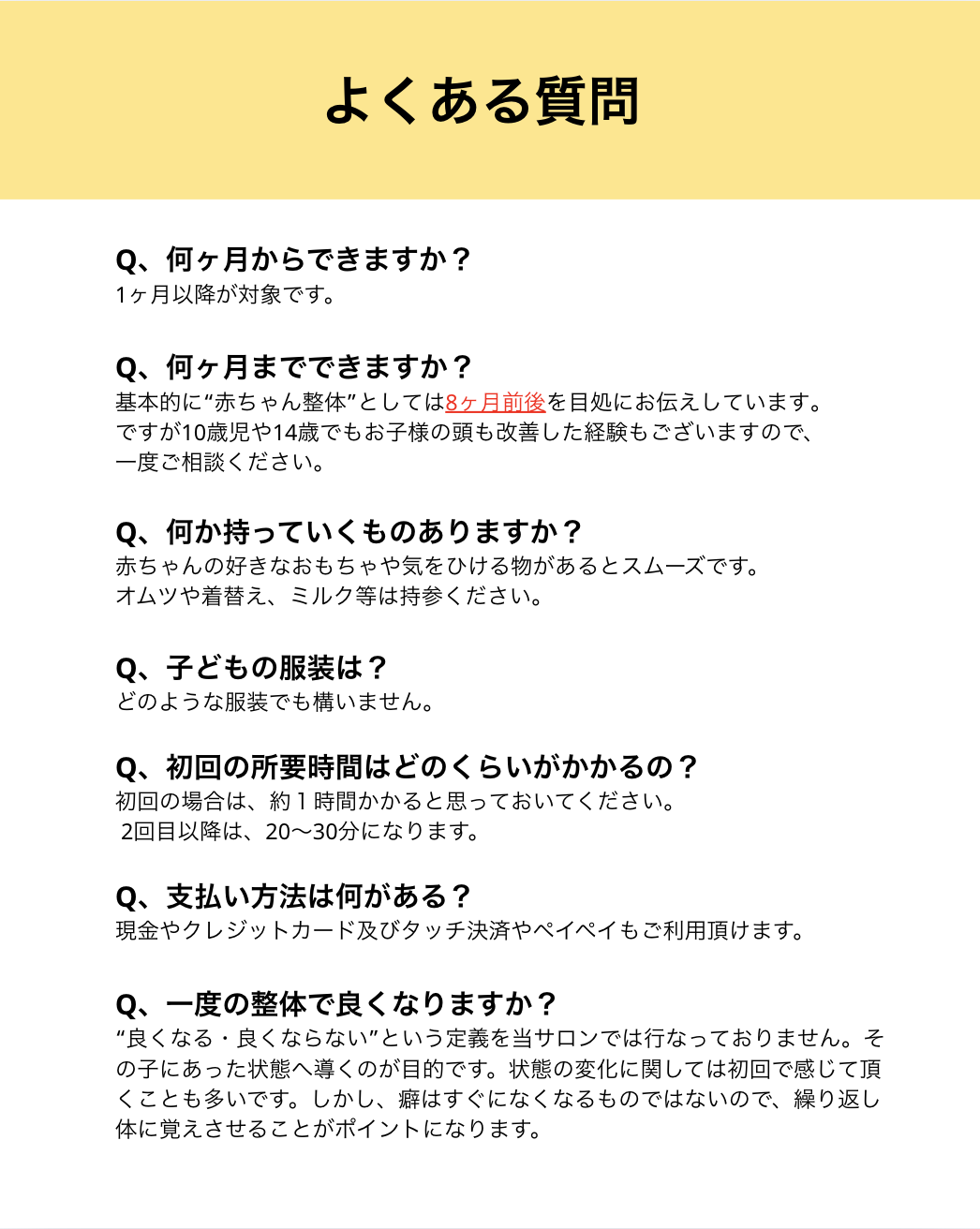 当サロンは鹿児島県姶良市を拠点に、鹿児島、宮崎、熊本エリアから多くの親御さんにご利用いただいている整体サロンです。便秘、向き癖、夜泣き、頭の形の歪みなど、赤ちゃん特有のお悩みに優しく対応し、